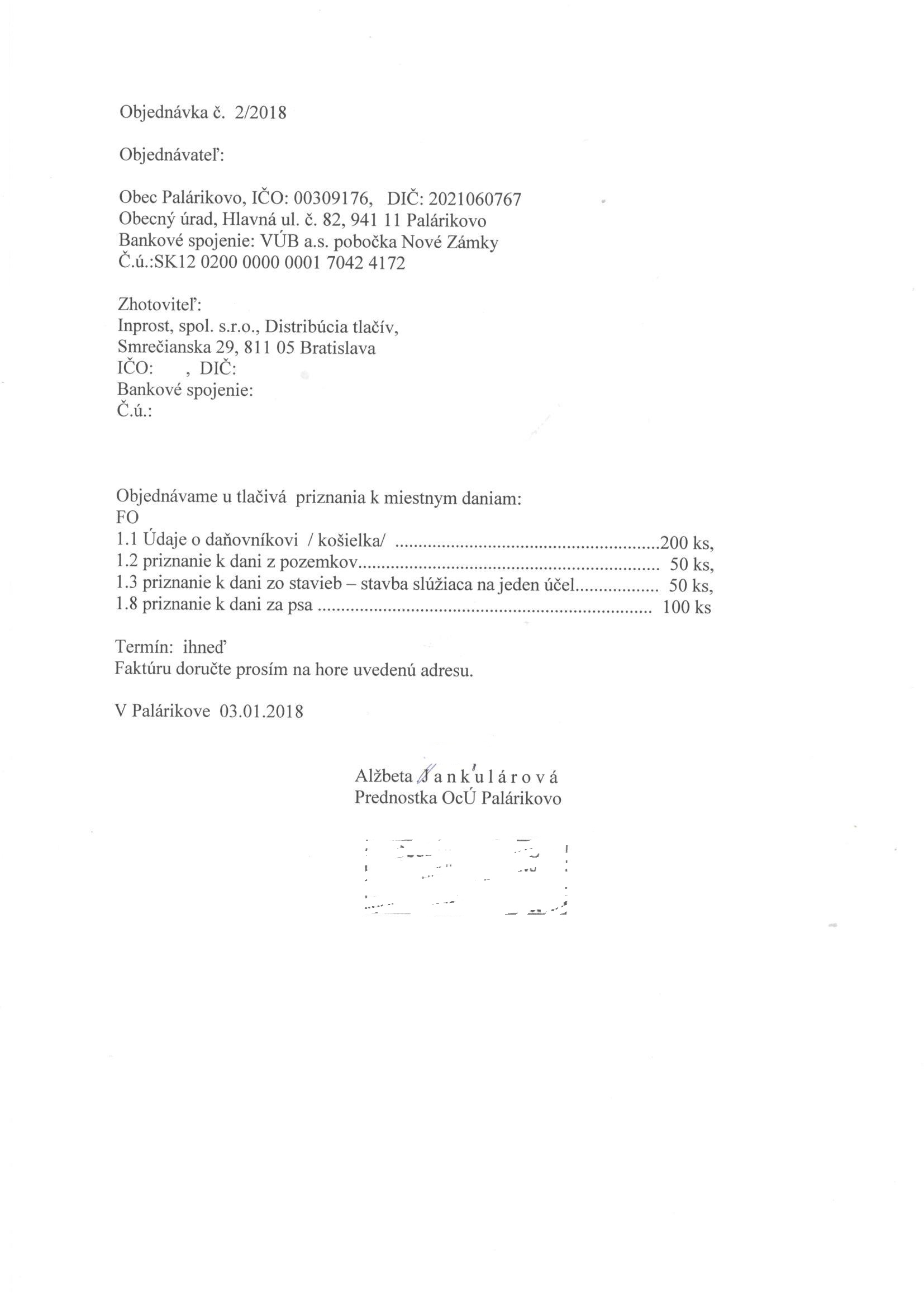 - Tlačivá priznania k miestnym daniam.