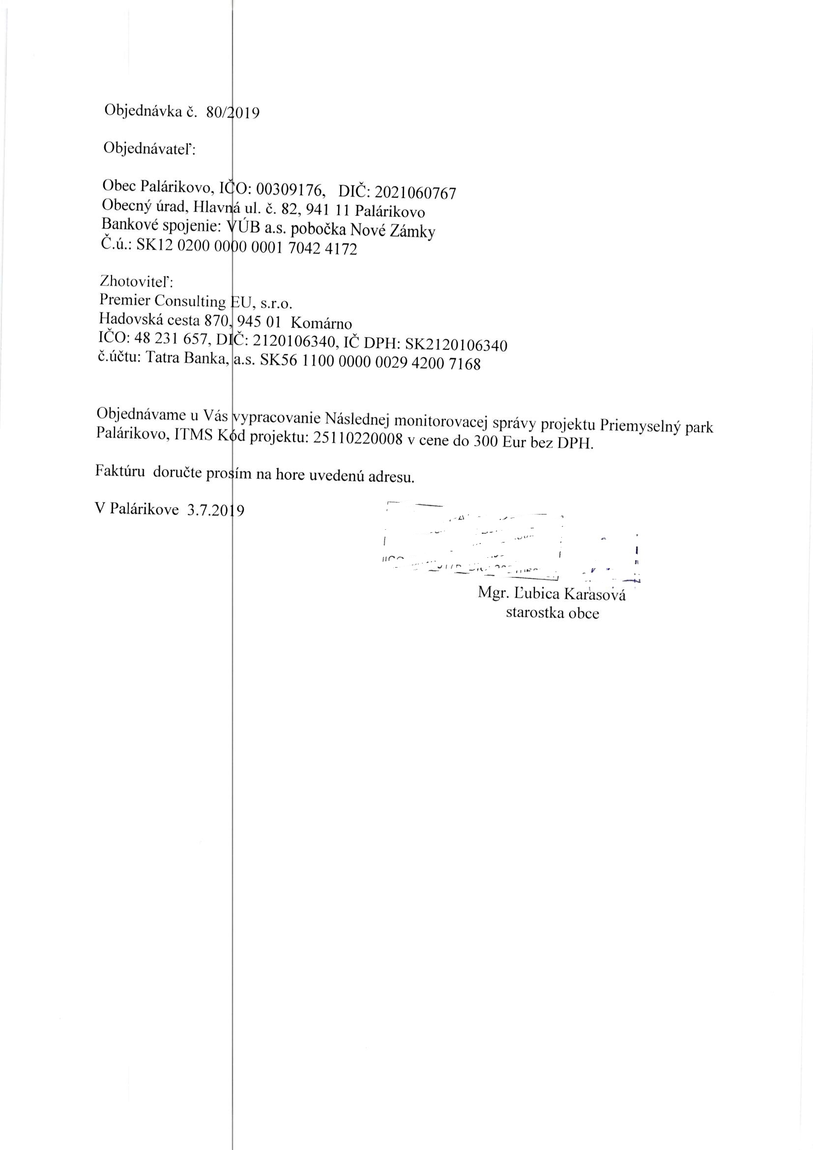- Číslo objednávky:
