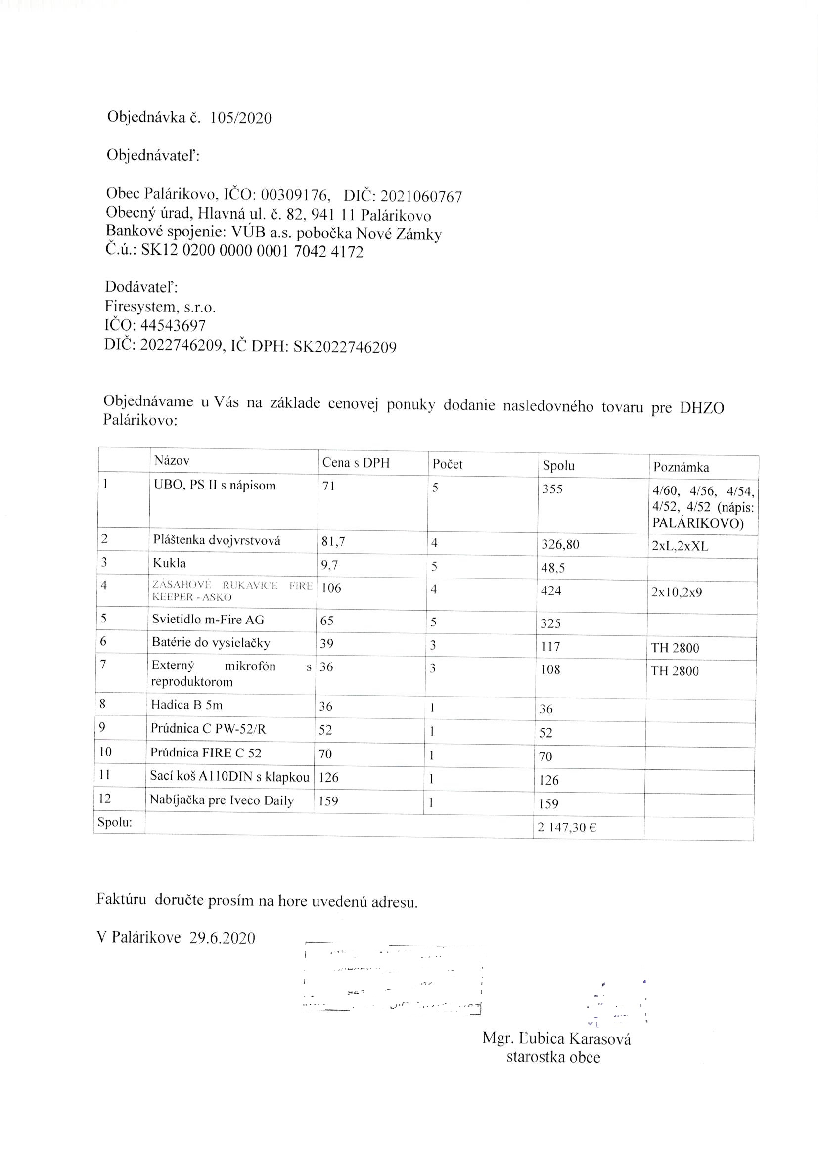 - Číslo objednávky: