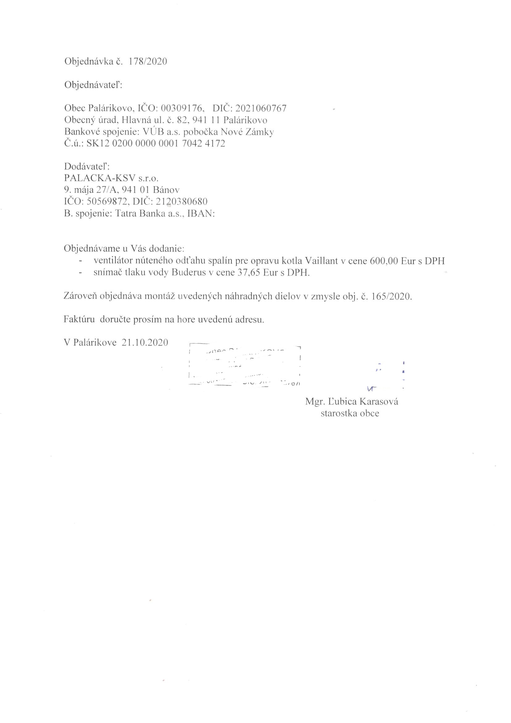 - Číslo objednávky: