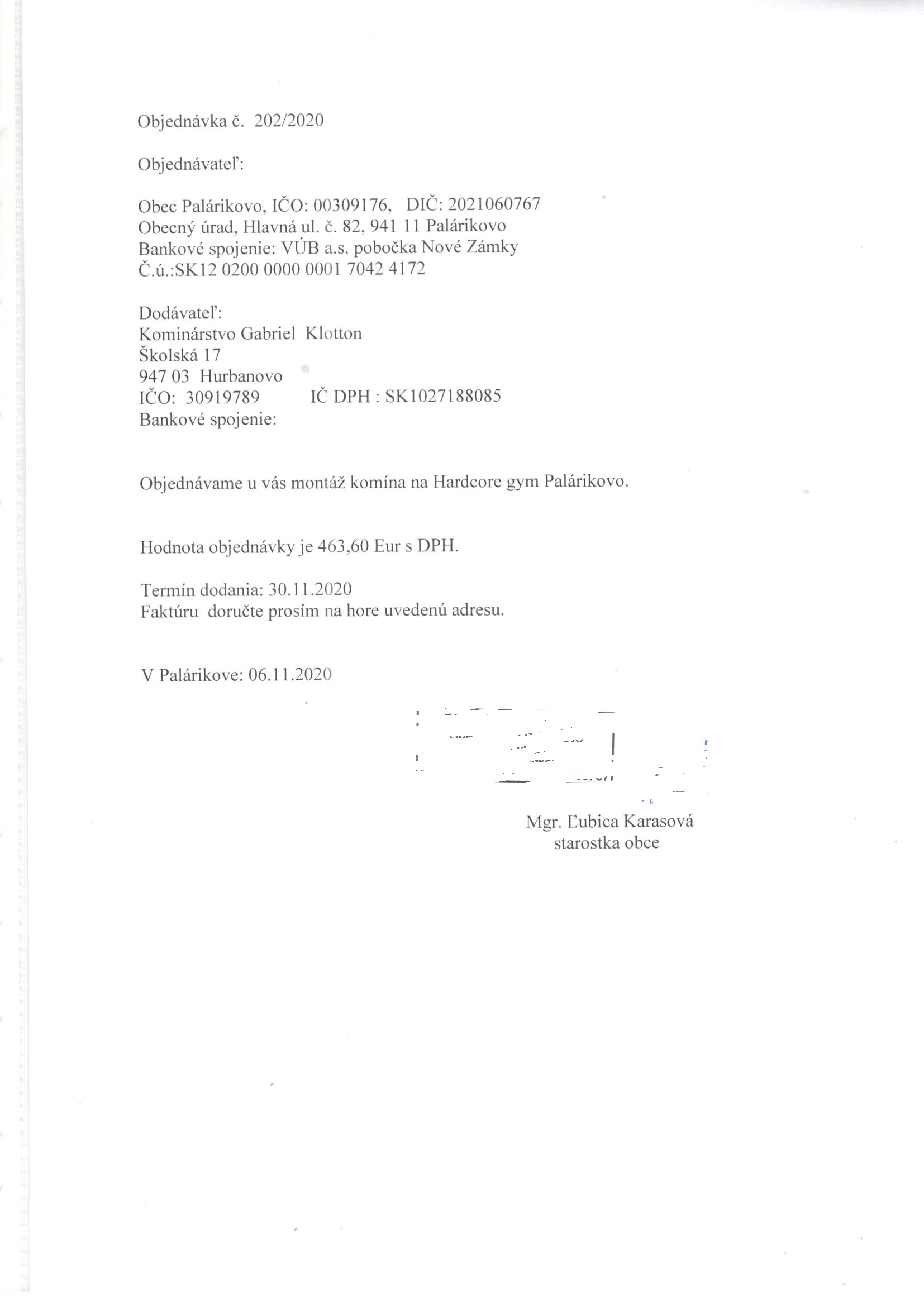 - Číslo objednávky: