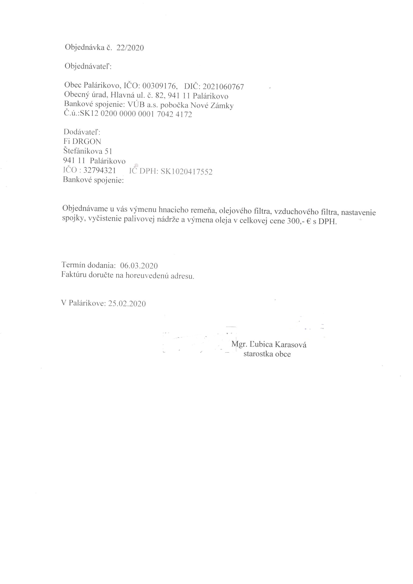 - Číslo objednávky: