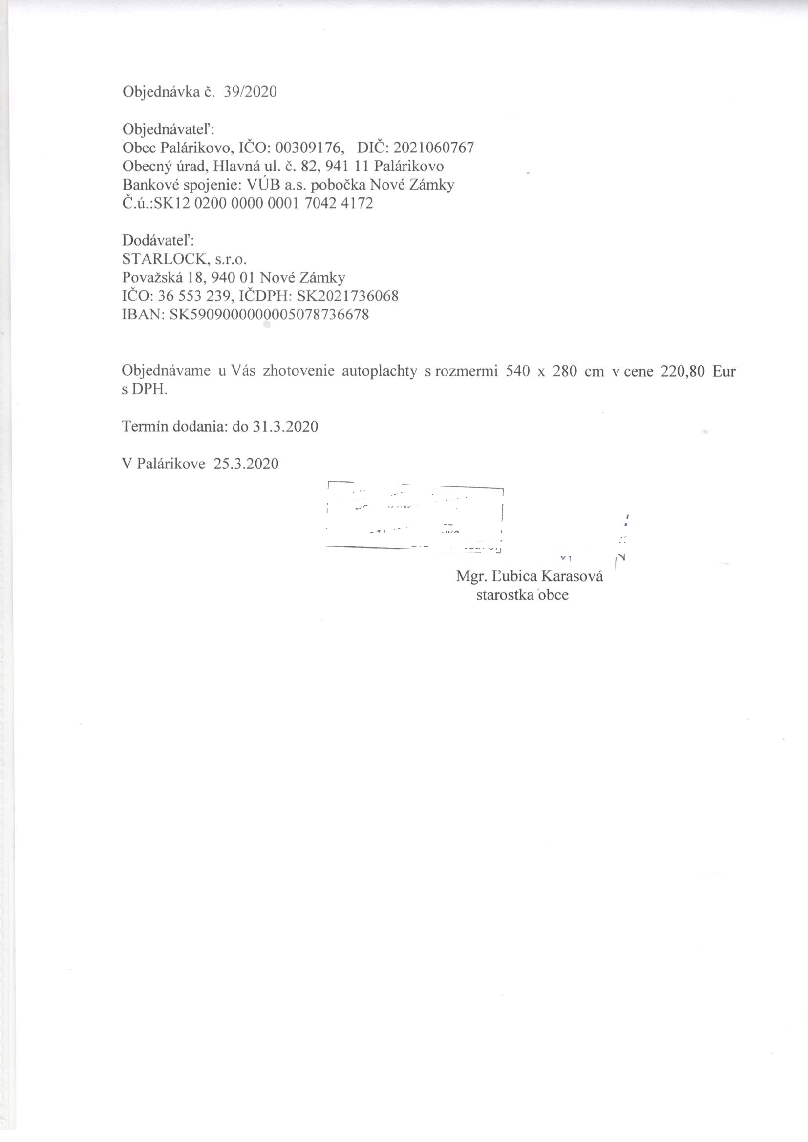 - Číslo objednávky: