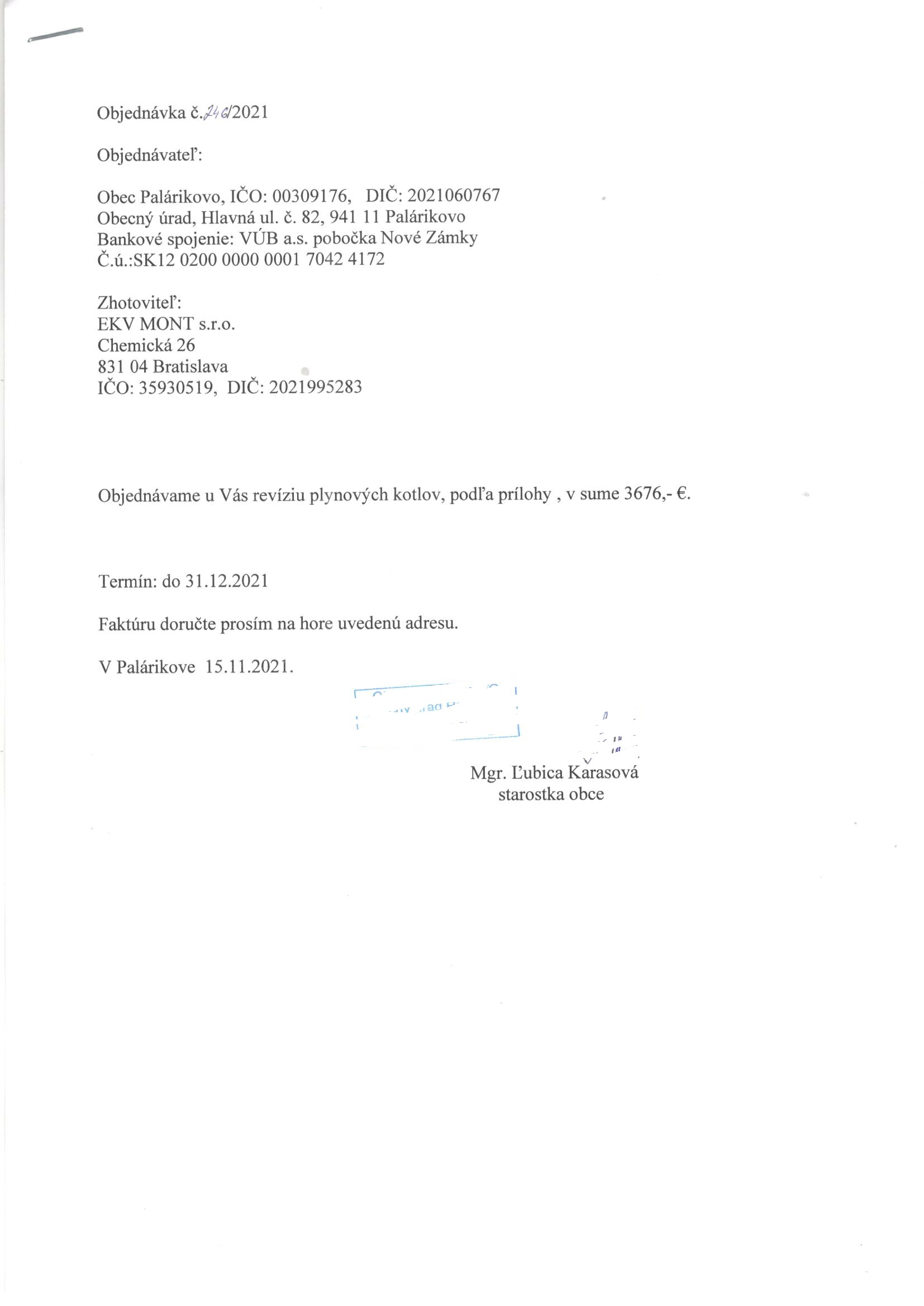 - Číslo objednávky: