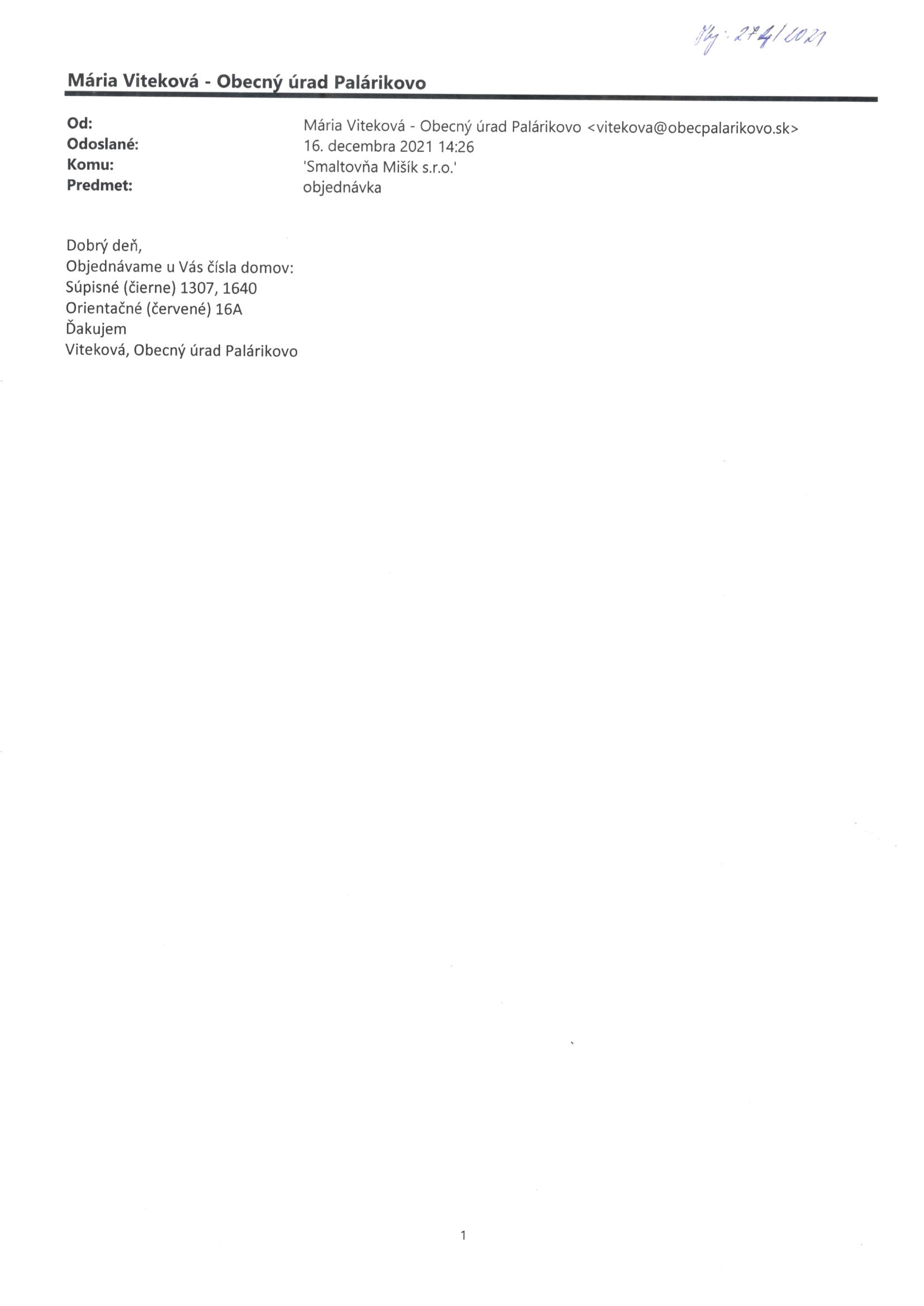 - Číslo objednávky: