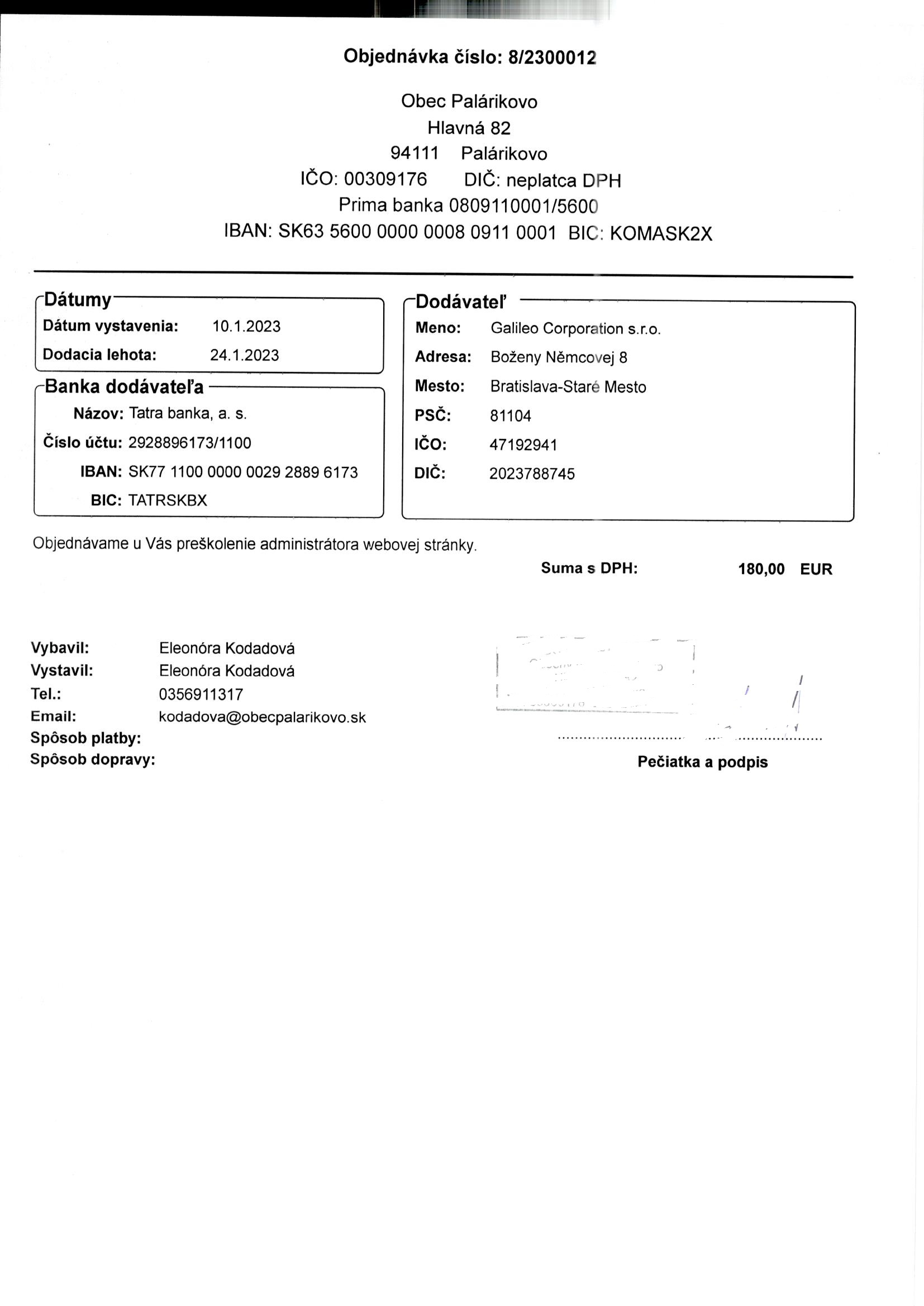 - Číslo objednávky: