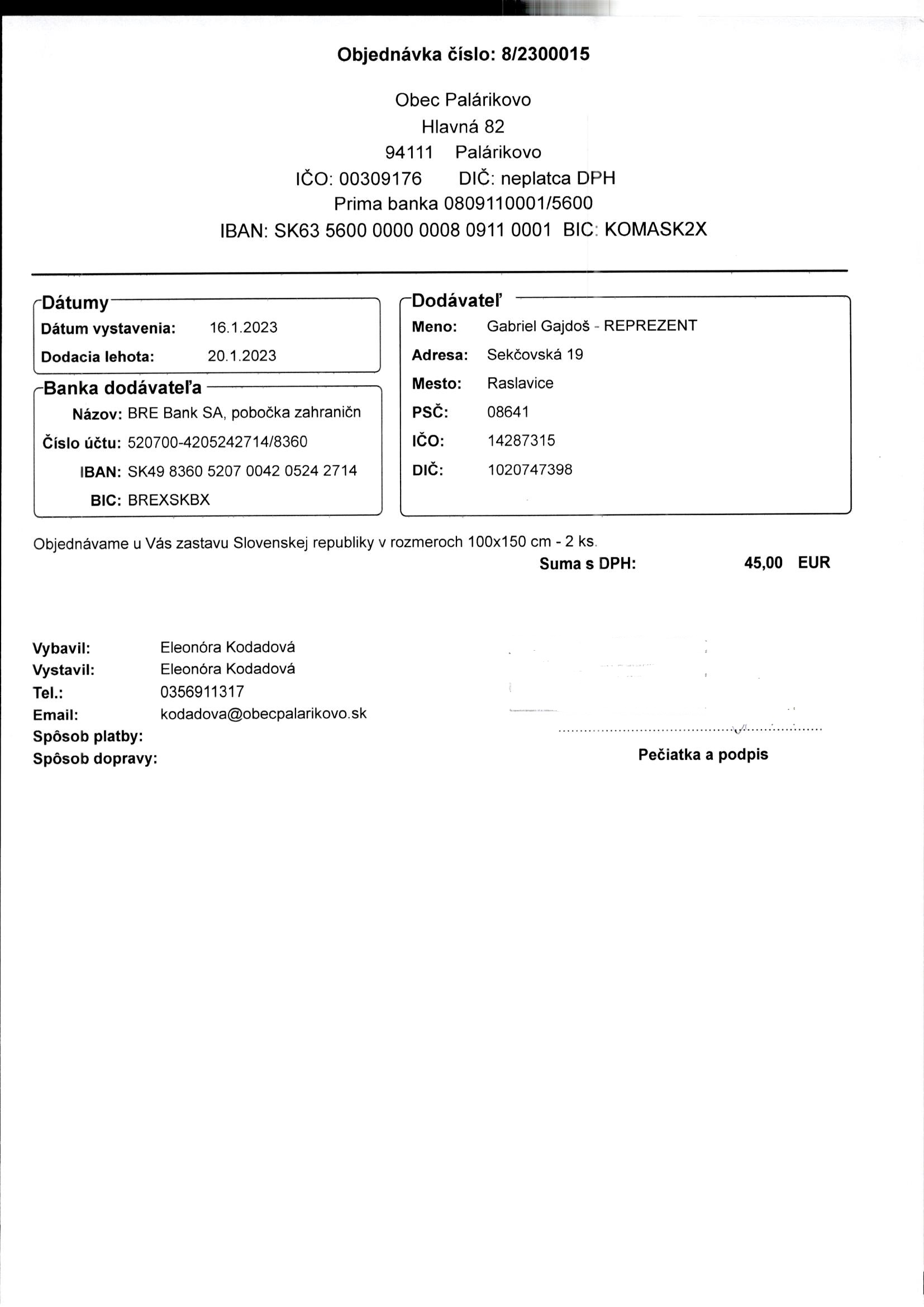 - Číslo objednávky: