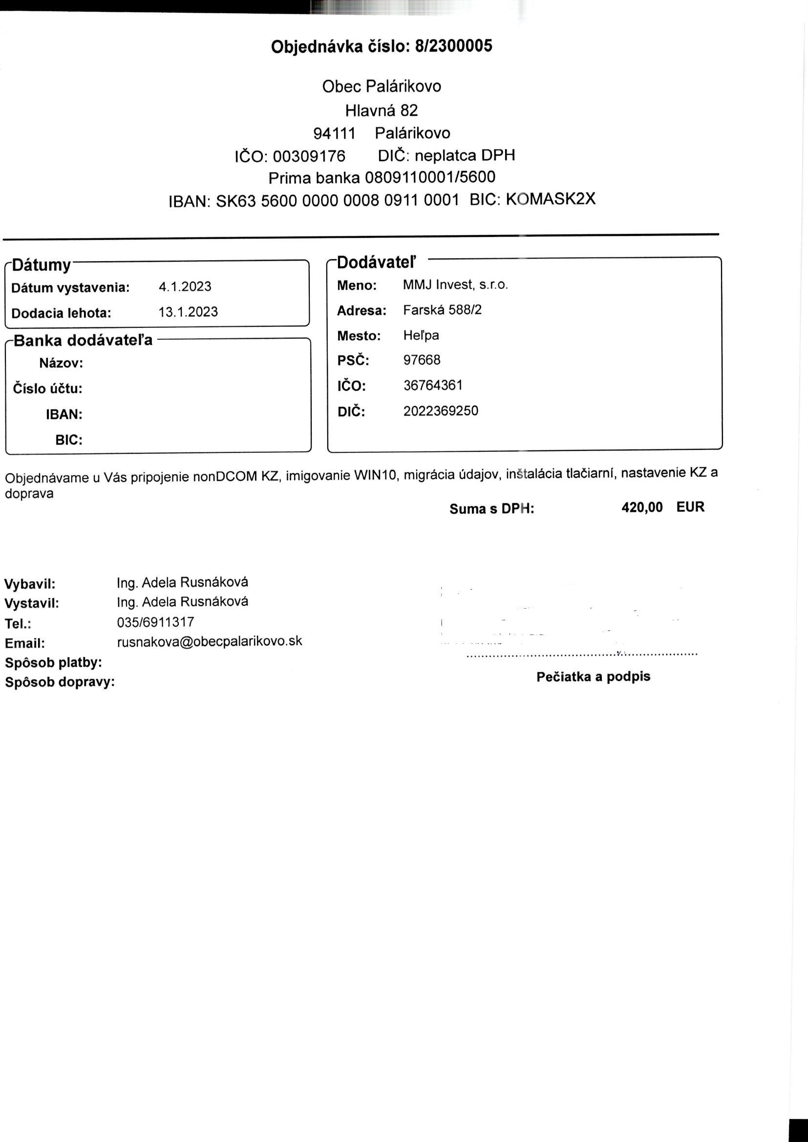 - Číslo objednávky: